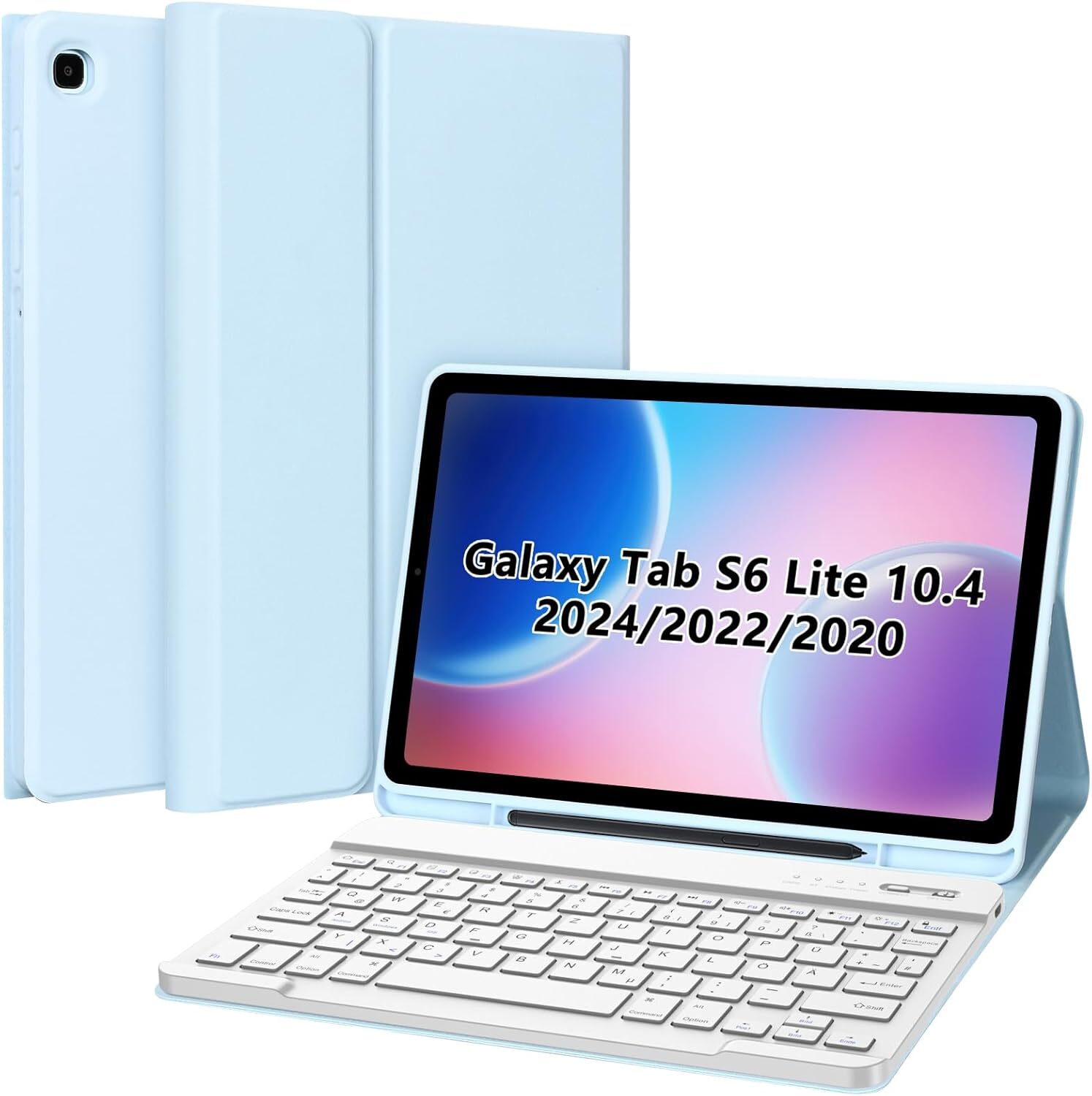 【Premium-Material】 Die stilvolle PU samsung galaxy tab s6 lite hülle schützt Ihr Gerät vor Kratzern, und die stoßdämpfende Hülle bedeckt das Tablet vollständig und verhindert Stürze und Stöße. Die Ledertasche unterstützt auch die automatische Weck-/Schlaffunktion.