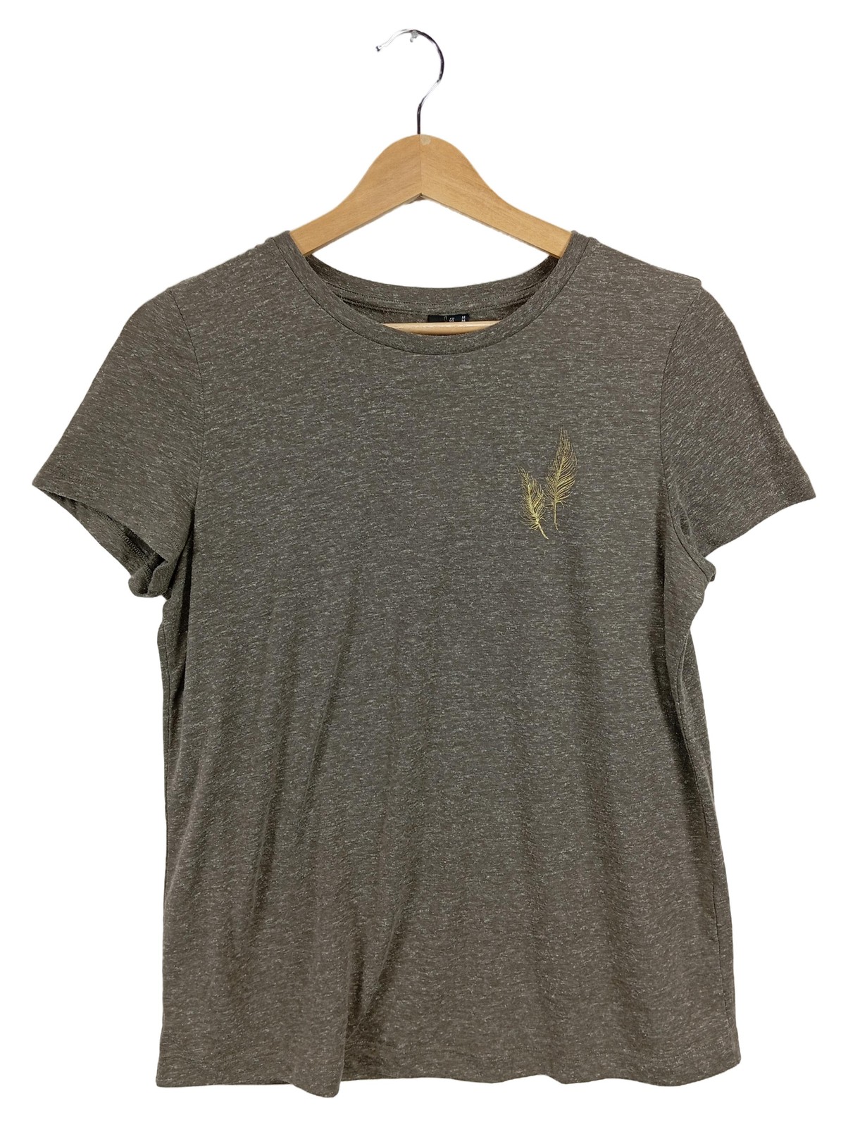 Vero Moda Damen T-Shirt Grau Meliert Baumwolle Feder Stickerei Gr. M