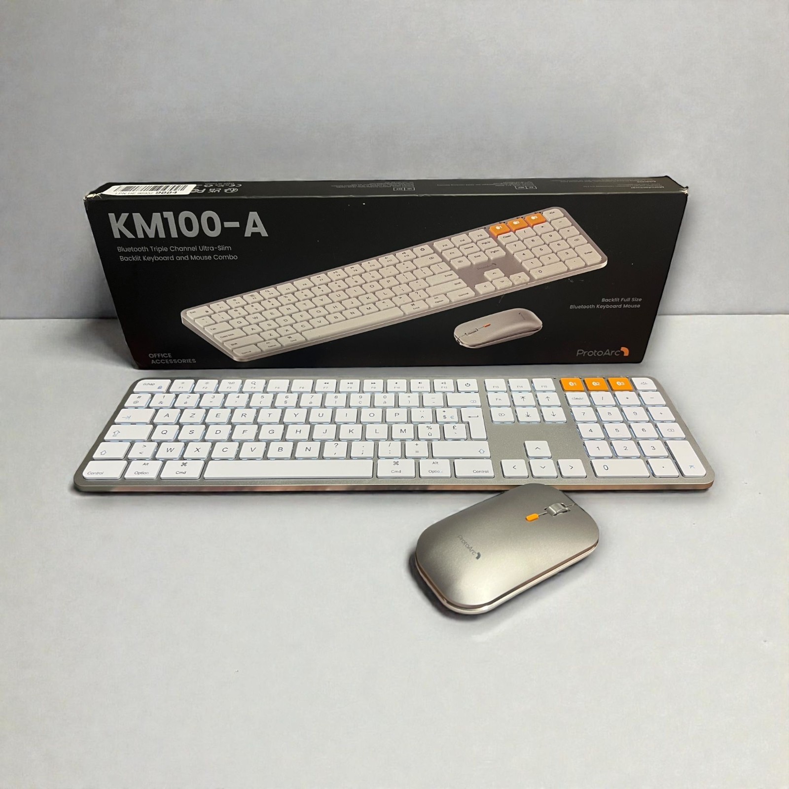 ProtoArc KM100-A Beleuchtet Tastatur Maus Set Kabellos für Mac, Bluetooth AZERTY Funk Tastatur mit Maus, Wireless Flach Keyboard Multi-Gerät für MacBook Pro, MacBook Air, iPhone, iPad, Grau⚠️Machen Sie die Welt ein bisschen nachhaltiger, indem Sie diesem zurückgegebenen Produkt ein zweites Leben schenken. ⚠️【Kompatibel mit Mac】ProtoArc wireless Tastatur und Maus für Mac sind kompatibel mit MAC OS 12.2 höher kompatibel und geeignet für MacBook, MacBook Pro, MacBook Air, Mac Pro/Mini, iPad, und iPhone. Wenn Ihr Mac über iOS- und Windows-Dual-Systeme verfügt, wird die Verwendung dieser Tastatur nicht empfohlen, da es zu Kompatibilitätsproblemen kommen kann.