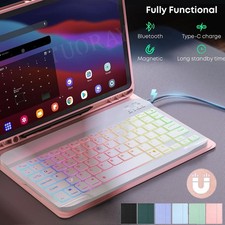 Bluetooth-Tastatur (QWERTZ) mit Beleuchtet. Abnehmbare Touchpad-Tastatur und Vollschutzabdeckung. 1 x USB-Ladekabel. Leder Hülle. -Material: PU-Leder. Bluetooth 5.0 Wiederaufladbare Maus Eigenschaften:(Das ios-System muss auf Version 13.2 oder höher aktualisiert werden). ).