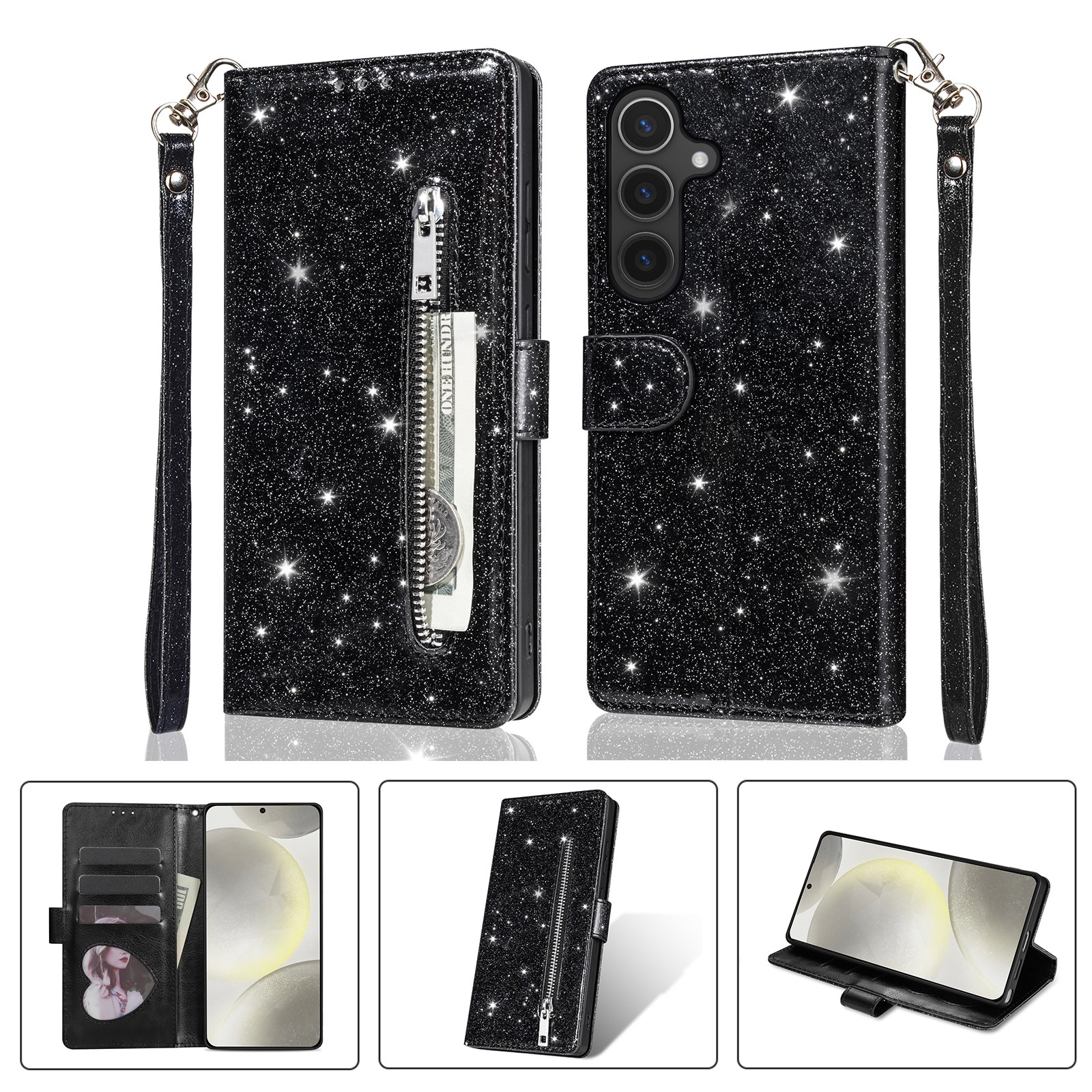 Glitzer Klapp Tasche HandyHülle Leder Case Für Samsung A17 A07 A37 A57 S26 Ultra