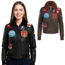 The Navy flight jacket as seen in the movie TOP GUN with patches and with brown fur collar or black. It is the Cowhide leather available in black and brown colour. Premium Cowhide Leather. Removable Fur Collar.