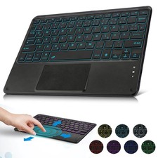 Beleuchtet & Touchpad Tastatur. Bluetooth-Maus und -Tastatur können gleichzeitig mit dem iPad verbunden werden. Tasten: 4 Tasten. Tastatur mit 7 Farben und Hintergrundbeleuchtung zum Tippen in dunkler Nacht, die helle Farbe und Helligkeit können umgeschaltet werden.