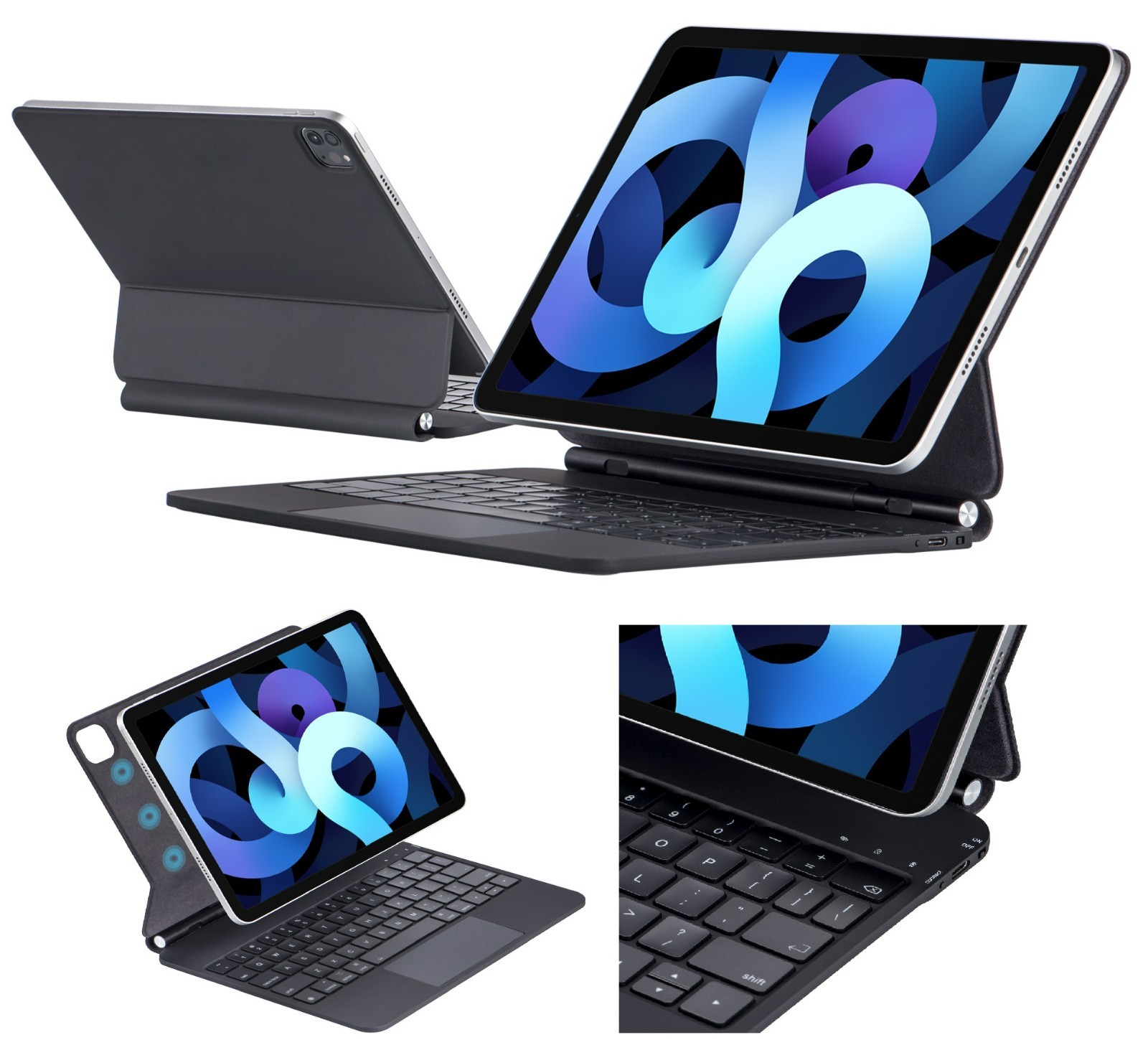 Premium Ultra Thin Magic Keyboard For iPad Air 10.9"/11", iPad Pro 11" with Multi-Functional Touchpad and Backlit UK Keyboard. Multi-functional Touchpad. (Incompatible iPad models will result in the keyboard not having a magnetic feature to hold the iPad securely.).