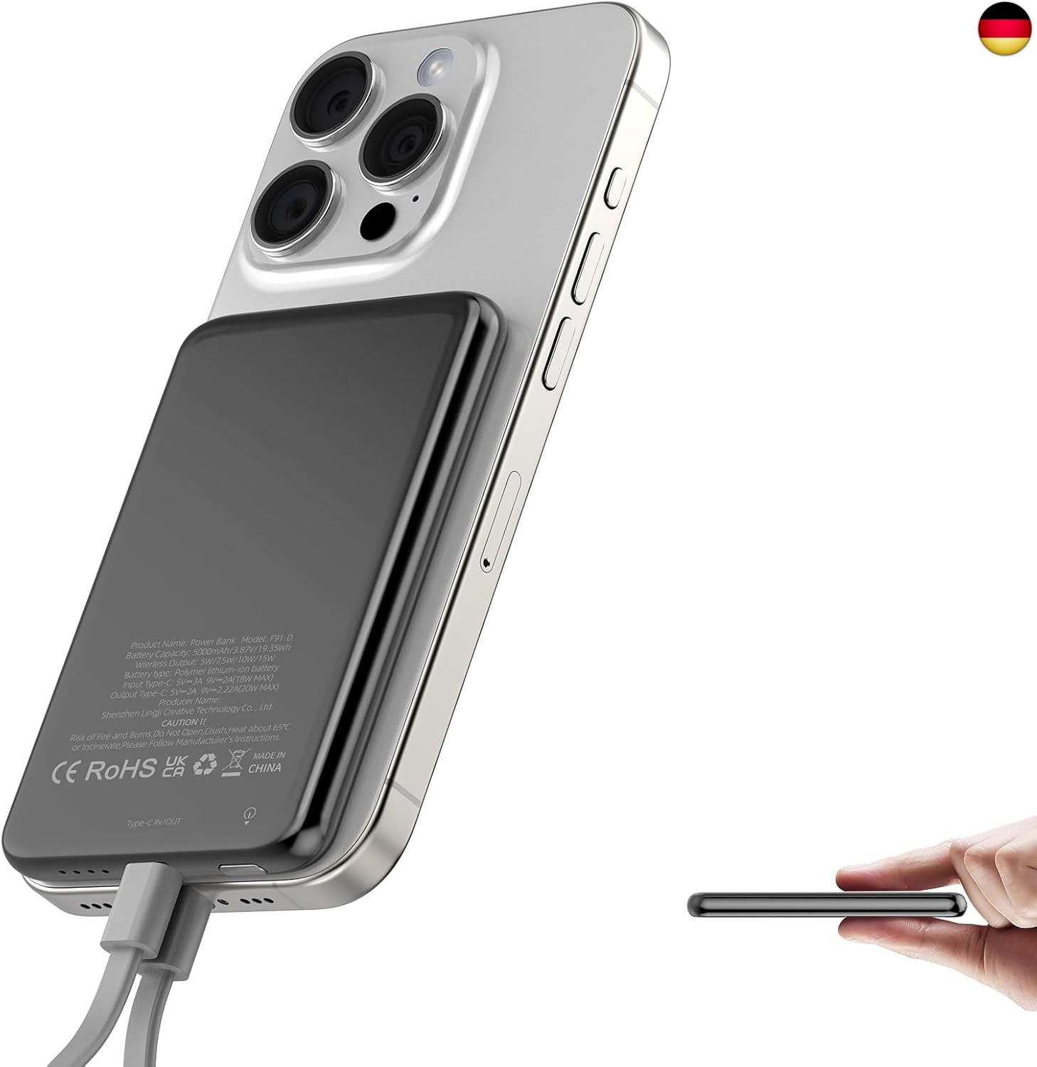 Ultra Slim Power Bank für Magsafe, Magnetische Power Bank, 5000mAh Powerbank