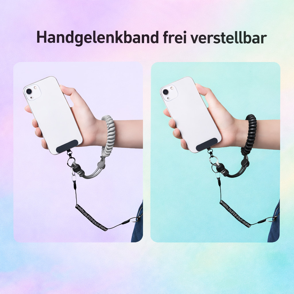 Umhängeband × 2 Stück. Vollstahl-Technologie: Spiralfeder und Klemmplatte aus 100% rostfreiem Edelstahl. Die Revolution der Handysicherung! Schluss mit gerissenen Nylon-Bändern. Unser Premium-Lanyard mit echtem Stahlkern bietet zertifizierten Diebstahlschutz für Ihr Smartphone.