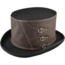 Klassischer Zylinderhut Zylinderhut mit Lederriemen 100% Echtleder Westernstil Antik