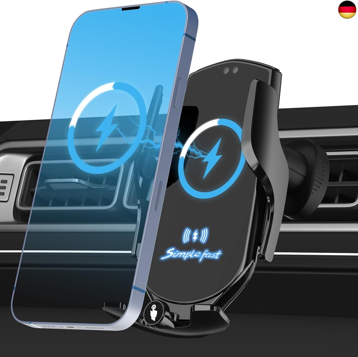 15 W Schnellladegerät für Huawei, LG v50, Xiaomi 9 usw., Max. Weitere Produktdetails. Außerdem ein Knopf zum Lösen und Schließen. 15W Handyhalterung Auto. 2025 Upgrade?. Mit einem um 360° drehbaren Kugelkopf können Sie Ihr Display problemlos in jeden beliebigen Winkel schwenken.