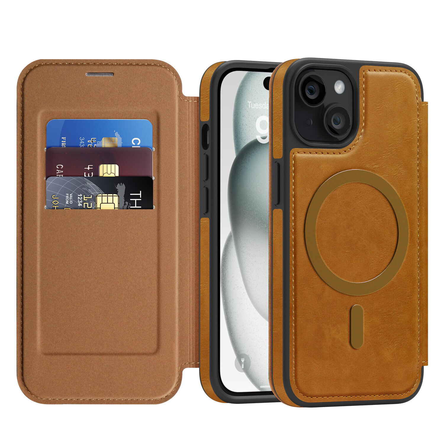 Magsafe Flip Hülle Für iPhone 16 15 14 13 12 Pro Max Handy Schutz Wallet Case