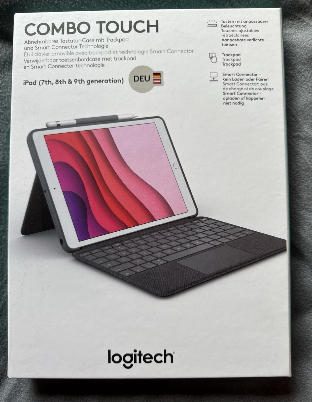 Die Logitech Combo Touch Tastatur-Case ist das ideale Zubehör für Ihr iPad der 7., 8. Mit ihrer integrierten QWERTZ-Tastatur in deutscher Sprachauslegung, einem beleuchteten Touchpad und einer robusten Konstruktion in elegantem Grau, bietet dieses Dock eine optimale Ergänzung für Produktivität und Komfort.