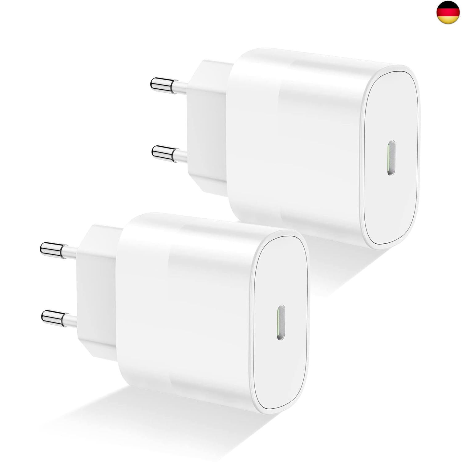USB C Netzteil Stecker, 2 Pack 20W USBC Adapter Ladegerät für iPhone 16/16 Pro M
