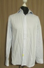 Curved hem ideal for tucking into trousers or wearing loose. This HUGO BOSS light blue shirt is a wardrobe staple, perfect for office wear, smart-casual outfits or evening occasions. Fit: Relaxed oversized fit, Chest 20" pit to pit, Length 30", Arm 21".