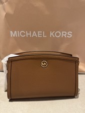 Erleben Sie pure Eleganz mit der Michael Kors Umhängetasche in einem edlen Braunton, perfekt für stilbewusste Damen. Das exklusive Design aus hochwertigem Leder verleiht dieser Tasche eine geschmeidige Haptik, während das Innenfutter in einem ansprechenden Beige gehalten ist. Mit einer praktischen Größe von 24 cm Breite, 20 cm Höhe und 6 cm Tiefe bietet sie genügend Raum für Ihre Essentials. Die Tasche zeichnet sich durch eine goldfarbene Karabinerschließe aus, die einen sicheren und stilvollen Verschluss gewährleistet. Das Futter aus robustem Stoff sorgt für Langlebigkeit und einen ebenso ansprechenden Look. Diese mittelgroße Tasche aus der renommierten Michael Kors Produktlinie ist ein echter Hingucker ohne Muster, der Ihr Outfit gekonnt abrundet.