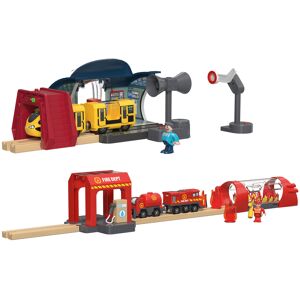 Batteriebetriebener Zug mit Vor-, Rückwärts- und Stoppfunktion und Magnetkupplung Kompatibel mit handelsüblichen Holzschienen-Sets Interaktiver Bahnhof-Set : Bahnstation mit selbstfahrender Eisenbahn und interaktiven Elementen Steuerung der Lok mittels Infrarot LEDs im Bogen und Bahnsignalen Inkl. Lautsprecher mit Aufnahme- und Abspielfunktion 10-teilig Feuerwehr Einsatz-Set : Feuerwehrstation mit selbstfahrendem Feuerwehrzug und Löschanhänger Automatische Stoppfunktion der Lok bei Hindernissen auf den Schienen 14-teilig Produktmerkmale table{width:100%;}td{padding-right: 30px; padding: 0.5rem; border-bottom: 0.0625rem solid #e3e4e5;} tr:nth-child(odd) {background-color: #F2F3F4;} Produktart: Holz-Eisenbahn-Set Material: Kunststoff, Magnet, Buche Altersempfehlung: ab 3 Jahren Maße: Interaktiver Bahnhof-Set : Bahnhof: ca. 21 x 18 x 10 cm, Lokomotive: ca. 10,5 x 3,7 x 5,2 cm, Anhänger: ca. 10,5 x 3,7 x 5,2 cm, Tunnel: ca. 11,1 x 8,2 x 5,2 cm, Bahnsignal: ca. 12,4 x 4 x 5 cm, Figur: ca. H 4,5 cm, 107er Gerade: ca. 11 cm Feuerwehr Einsatz-Set : Feuerwehrstation: ca. 12,5 x 16,5 x 11,5 cm, Feuerwehrtunnel: ca. 21,7 x 7 x 8 cm, Feuerwehrauto: 10,8 x 3,5 x 5,1 cm, Anhänger: ca. 5,5 x 3,35 x 5,1 cm, Figur: ca. H 4,7 cm, Feuer: ca. H 3,7 cm, 107er Gerade: ca. 10,7 cm Gewicht: Interaktiver Bahnhof-Set : ca. 832 g; Feuerwehr Einsatz-Set : ca. 550 g Lieferumfang: Interaktiver Bahnhof-Set : 1x Bahnhof mit 3 Wänden; Dach und Eingangsbereich, 1x 107er Gerade, 1x Figur, 1x Lokomotive mit Infrarot Technologie, 1x Tunnel mit Infrarot, 1x Anhänger; 1x Bahnsignal mit Infrarot Feuerwehr Einsatz-Set: 1x Feuerwehrstation, 1x Feuerwehrtunnel mit Licht und Soundeffekt, 1x Lokomotive mit Stop-Technologie, 1x Anhänger; 1x Figur, 2x 107er Gerade, 3x Feuer, 1x Usb-C Kabel Warnhinweis: Achtung. Das Spielzeug erzeugt Lichtblitze, die bei empfindlichen Personen Epilepsie auslösen können. Enthält Münzbatterie. Bei Verschlucken besteht Gesundheitsgefahr – siehe Anleitung. Nicht für Kinder unter 36 Monaten geeignet. Erstickungsgefahr, da kleine Teile verschluckt oder eingeatmet werden können!