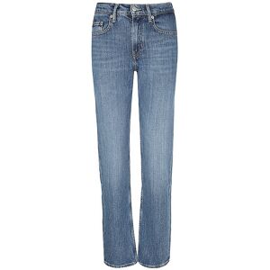 Damen Jeans aus Baumwoll-Stretch Mittlere Leibhöhe Schließt mit Knopf- und Reißverschluss 5-Pocket-Style Logo-Patch am Bund hinten Schmaler, gerader Beinverlauf Dezente Waschung Farbbezeichnung: Blue Material: 99% Baumwolle, 1% Elasthan