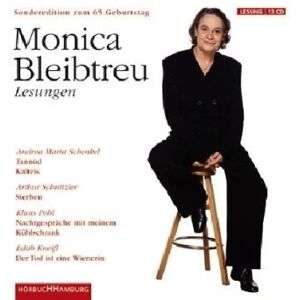 Binding : Audio CD, Label : Hörbuch Hamburg, Publisher : Hörbuch Hamburg, NumberOfItems : 13, Format : Audiobook, medium : Audio CD, publicationDate : 2009-04-08, runningTime : 937 minutes, authors : Klaus Pohl, Edith Kneifl, Arthur Schnitzler, Schenkel, Andrea Maria, narrators : Monica Bleibtreu, languages : german, ISBN : 3899036522