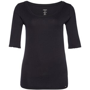 Ein simpler Style in feinster Qualität: das cleane Damen-Shirt mit halben Ärmeln und weitem Rundhals-Ausschnitt. Die weiche Baumwolle plus Elasthananteil und die anspruchsvolle Verarbeitung entsprechen höchsten Ansprüchen. Für einen schönen Akzent sorgt der applizierte Schmuckstein vorne über dem Saum. Farbe: Midnight Blue Leichte Baumwoll-Elasthan Mischung Dezent taillierter Schnitt. Inside-Out-Nähte am abgesetzten Ausschnitt und den Armlochnähten Material: 95%Baumwolle, 5%Elasthan