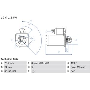 BOSCH Starter Anzahl der Gewindebohrungen:0 Bohrung-Ø [mm]:8 mm Spannung [V]:12 V Zähnezahl:9 Ritzel-Grundposition [mm]:21 mm Lage/Grad:rechts ° Anzahl der Befestigungsbohrungen:1 Winkelmaß Maulöffnung [Grad]:120 ° Drehrichtung:Drehrichtung im Uhrzeigersinn Länge [mm]:241 mm Starterleistung [kW]:1,2 kW Gewindemaß 2:M10x1.5 Befestigungswinkel [Grad]:30 ° Flansch-Ø [mm]:76,2 mm Winkelmaß Befestigungsbohrung [Grad]:30 ° Klemme:30,30h,50 Gewindemaß 1:M10x1.5 Austauschteil Starterausführung:eigengelagert , u.a. für BMW 3 (E30), 1596 cm³, 100 PS (73 kW), 9/1987 bis 6/1991, KBA-Nr: 0005483BMW 3 (E30), 1796 cm³, 115 PS (85 kW), 9/1987 bis 6/1991, KBA-Nr: 0005470BMW 3 (E30), 1796 cm³, 113 PS (83 kW), 6/1987 bis 12/1991, KBA-Nr: 0005471BMW 3 (E30), 1796 cm³, 136 PS (100 kW), 9/1989 bis 8/1991, KBA-Nr: 0005487BMW 3 (E30), 1796 cm³, 113 PS (83 kW), 4/1989 bis 6/1994, KBA-Nr: 0005486BMW 3 (E36), 1596 cm³, 100 PS (73 kW), 3/1991 bis 8/1993, KBA-Nr: 0005508BMW 3 (E36), 1596 cm³, 102 PS (75 kW), 9/1993 bis 5/1998, KBA-Nr: 0005507BMW 3 (E36), 1796 cm³, 113 PS (83 kW), 9/1990 bis 8/1993, KBA-Nr: 0005504BMW 3 (E36), 1796 cm³, 140 PS (103 kW), 9/1993 bis 12/1995, KBA-Nr: 0005535BMW 3 (E36), 1796 cm³, 140 PS (103 kW), 1/1992 bis 12/1995, KBA-Nr: 0005518BMW 3 (E36), 1990 cm³, 150 PS (110 kW), 1/1991 bis 2/1998, KBA-Nr: 0005505BMW 3 (E36), 1990 cm³, 150 PS (110 kW), 12/1991 bis 11/1998, KBA-Nr: 0005519BMW 3 (E30), 1596 cm³, 100 PS (73 kW), 9/1991 bis 6/1994, KBA-Nr: 0005512BMW 5 (E34), 1990 cm³, 150 PS (110 kW), 4/1990 bis 8/1995, KBA-Nr: 0005492BMW 5 (E34), 2494 cm³, 192 PS (141 kW), 10/1991 bis 8/1995, KBA-Nr: 0005521BMW 5 (E34), 1990 cm³, 150 PS (110 kW), 7/1991 bis 7/1996, KBA-Nr: 0005515BMW 5 (E34), 2494 cm³, 192 PS (141 kW), 7/1991 bis 7/1996, KBA-Nr: 0005516BMW 5 (E34), 2494 cm³, 192 PS (141 kW), 1/1992 bis 3/1996, KBA-Nr: 0005522BMW 3 (E30), 1796 cm³, 113 PS (83 kW), 9/1990 bis 10/1993, KBA-Nr: 0005496BMW 3 (E36), 1990 cm³, 150 PS (110 kW), 12/1993 bis 11/1999, KBA-Nr: 0005530BMW 3 (E36), 1596 cm³, 102 PS (75 kW), 9/1993 bis 11/1998, KBA-Nr: 0005538BMW 3 (E36), 1796 cm³, 115 PS (85 kW), 3/1994 bis 11/1999, KBA-Nr: 0005495BMW 3 (E36), 1596 cm³, 102 PS (75 kW), 1/1994 bis 8/2000, KBA-Nr: 0005541BMW 5 (E34), 1796 cm³, 115 PS (85 kW), 2/1996 bis 7/1996, KBA-Nr: 0005545BMW 3 (E36), 1796 cm³, 140 PS (103 kW), 9/1994 bis 12/1995, KBA-Nr: 0005549BMW 3 (E36), 1990 cm³, 150 PS (110 kW), 1/1995 bis 4/1999, KBA-Nr: 0005555BMW 3 (E36), 2793 cm³, 193 PS (142 kW), 2/1995 bis 4/1999, KBA-Nr: 0005557BMW 3 (E36), 2793 cm³, 193 PS (142 kW), 1/1995 bis 4/1998, KBA-Nr: 0005556BMW 3 (E36), 2494 cm³, 170 PS (125 kW), 5/1995 bis 11/1998, KBA-Nr: 0005560BMW 3 (E36), 2793 cm³, 193 PS (142 kW), 1/1995 bis 4/1999, KBA-Nr: 0005558BMW 3 (E36), 2793 cm³, 193 PS (142 kW), 1/1995 bis 11/1999, KBA-Nr: 0005559BMW 5 (E34), 1796 cm³, 115 PS (85 kW), 5/1994 bis 8/1995, KBA-Nr: 0005490BMW 5 (E34), 1796 cm³, 113 PS (83 kW), 9/1989 bis 4/1994, KBA-Nr: 0005491BMW 5 (E34), 1796 cm³, 113 PS (83 kW), 4...