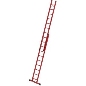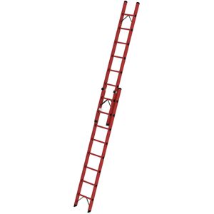 Seilzugleiter geprüft nach DIN EN 131. Die Ausführung berücksichtigt die EN 61478:2002 (1.000 Volt). Hinweis Bestell-Nr. 36608 bis 36610 Schiebeleiter: Verstellung von Sprosse zu Sprosse per Hand, beide Leiterteile getrennt verwendbar. Leiterteile bei Bestell-Nr. 36612 nicht trennbar Hinweis: Vollkunststoff-Schiebe- und Seilzugleitern über 3,0 m Leiterlänge Die Vollkunststoff-Schiebe- und Seilzugleiter können Sie wie gewohnt ohne Traverse beziehen, sofern diese ausschließlich im bestimmungsgemäßen Gebrauch eingesetzt wird. Beispiele: fester Verbau, fester Einbau/Anbau, Leiter mit Haken oder mit Zurrband-, Gurtbefestigung Holme und Sprossen aus GFK, ohne Füllstoffe, Beschläge aus Stahl verzinkt. Rutschsichere, beidseitig geriffelte Sprossen 28 x 29 mm Hochfeste Sprossen- / Holmverbindung Die Standard-Traverse sorgt für einen sicheren Stand bei Anlegeleitern über 3,0 m Optimale Traversenbreiten in Kombination mit rutschsicheren Leiterschuhen, erhöhen die Sicherheit beim Aufstieg Sprossenabstand: 280mm Außenbreite: 420mm Mind. 10 Jahre Alterungsbeständigkeit der GFK-Profile Wussten Sie auch? Die Deutsche gesetzliche Unfallversicherung(DGUV) rät, schwere oder sperrige Leitern aus ergonomischen Gründen u.a. mit Transportrollen zu benutzen