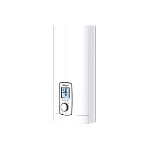 Stiebel Eltron DHE 18/21/24 kW Komfort-Durchlauferhitzer 202656EINSATZBEREICH: Elektrischer Durchlauferhitzer für die gradgenaue und immer konstante Warmwasserversorgung mehrerer Entnahmestellen in Küche und Bad. Das geschlossene, druckfeste Gerät kann mit allen handelsüblichen Druckarmaturen verwendet werden.KOMFORTMERKMALE: Jederzeit gradgenaue Wunschtemperaturen dank der elektronischen Durchflussmengenregelung. Die Temperatur wird stufenlos und digital mit einem Drehwähler in 0,5 °C Schritten eingestellt. Drehbare Gerätekappe und Bedieneinheit für erhöhten Bedienkomfort bei Untertischmontage.ENERGIESPAREN: Spart dank der 4i-Technologie und der vollelektronischen Leistungsregelung bis zu 30 % Energie und Wasser. Individuell wählbarer ECO-Modus für besonders sparsamen Betrieb.SICHERHEIT: Einstellbare Kindersicherung gegen unbeabsichtigtes Verstellen und Überhitzungsschutz. Zusätzlich kann ein dauerhafter Verbrühschutz vom Fachhandwerker eingestellt werden.INSTALLATION: Zeitsparende Montage durch PROFI-RAPID-Installationssystem und müheloser Austausch aller gängigen Durchlauferhitzer. Starkstromanschluss wahlweise oben oder unten.LIEFERUMFANG: STIEBEL ELTRON Warmwassererzeuger DHE 18/21/24, Wandhalterung, Empfangsmodul, Sonderzubehör (siehe unten), Bedienungs- und InstallationsanleitungStarkstromanschluss (3~/400V) erforderlich. Eventuell ist die Zustimmung des lokalen Netzbetreibers erforderlich. Montage nur durch qualifiziertes Fachpersonal.