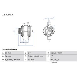 BOSCH Generator Anzahl der Rillen:6 Spannung [V]:14 V Generator-Ladestrom [A]:90 A Befestigungsart:Doppelschwenkarm Steckerausführung-ID:PL139 Länge [mm]:165 mm empfohlene Reparaturerweiterung:Keilriemen/Keilrippenriemen Drehrichtung:Drehrichtung im Uhrzeigersinn Riemenscheiben-Ø [mm]:55 mm Klemme:B+(M8),P,D Generatorausführung:exkl. Vakuumpumpe Riemenscheiben:mit Mehrfachriemenscheibe Austauschteil Abstand von Riemenscheibe zum Generator [mm]:13 mm , u.a. für Mazda 2 (DE, DH), 1349 cm³, 75 PS (55 kW), 10/2007 bis 6/2015, KBA-Nr: 7118ABSMazda 2 (DE, DH), 1498 cm³, 103 PS (76 kW), 7/2007 bis 6/2015, KBA-Nr: 7118ABQMazda 2 (DE, DH), 1349 cm³, 86 PS (63 kW), 10/2007 bis 6/2015, KBA-Nr: 7118ABRMazda 3 (BL), 1598 cm³, 105 PS (77 kW), 12/2008 bis 9/2014, KBA-Nr: 7118ACXMazda 3 (BL), 1598 cm³, 105 PS (77 kW), 12/2008 bis 9/2014, KBA-Nr: 7118ACZMazda 2 (DE, DH), 1498 cm³, 102 PS (75 kW), 6/2011 bis 6/2015, KBA-Nr: 7118ADTMazda 2 (DE, DH), 1349 cm³, 84 PS (62 kW), 1/2010 bis 6/2015, KBA-Nr: 7118ADUMazda 3 (BM, BN), 1598 cm³, 105 PS (77 kW), ab 9/2013Mazda 2 (DE, DH), 1349 cm³, 75 PS (55 kW), 5/2011 bis 11/2014, KBA-Nr: 7118AEUMazda 2 (DE, DH), 1349 cm³, 84 PS (62 kW), 5/2011 bis 11/2014, KBA-Nr: 7118AEVMazda 2 (DE, DH), 1498 cm³, 113 PS (83 kW), 10/2007 bis 6/2015 , OE-Nummer:BOSCH:1 986 A01 412