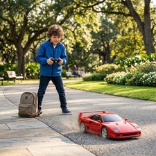 Der Traum einen schönen sportlichen Wagen zu fahren kann jetzt wahr werden. Mit diesem offiziell lizensierten Deluxe Car Modell von Jamara können Sie sich das Gefühl einen Traumflitzer zu besitzen ins heimische Wohnzimmer holen. Mit LED Fahrlicht, einem detailgetreuen Innenraum und perfekt nachgebildeten originalen Details an Chassis und Karosserie, die mit viel Liebe umgesetzt wurden, überzeugen die Fahrzeuge auch durch die hochwertige Verarbeitung. Mit der ergonomischen Fernsteuerung halten Sie, wie in einem echten Rennwagen, die Schaltzentrale in der Hand und erreichen Geschwindigkeiten bis zu 11 Km/h. Leicht zu erlernende Kommandos lassen das Modell genau das tun was Sie vorgeben. Also, ab zur Stadtrunde auf dem Parkett im Kinderzimmer und dem Spielspaß steht nichts mehr im Wege.Alle Deluxe Car Modelle von JAMARA sind Roboterlackiert. Dieses Verfahren ist einmalig bei den lizensierten Fahrzeugen. Statt einem einfachen eingefärbten Kunststoff kommen bei diesem Lackierverfahren Farben zum Einsatz die dem originalen Farbton des Fahrzeugherstellers nachempfunden wurden. Detailgetreuer Innenraum Bei den lizensierten Fahrzeugen im Maßstab 1:14 gibt es neben der originalgetreuen Fahrzeugbauform auch einen dem Original nachempfundenen Innenraum. Mit Lenkrad, Armaturenbrett, und Ausstattungsmerkmalen wie beim echten Automobil dieser Marke. Bis ins kleineste Detail wurde hier auf alles geachtet und umgesetzt. LED Fahrlicht Wie bei einem echten Fahrzeug in der Spezialausstattung gibt es bei diesem Modell ein Start-Stop LED Fahrlicht. Sobald das Modell losfährt leuchten die Scheinwerfer hell auf. Wenn das Auto stoppt gehen die LED Fahrlichter wieder aus. Diese Funktion spart Energie und erhöht die Fahrzeit des Modelles. Scheinwerfer können per Fernsteuerung geöffnet werden Ein Highlight bei diesem Modell sind die elektrischen Scheinwerfer. Einfach per Knopfdruck an der Fernsteuerung Scheinwerfer öffnen und schließen. Erforderlich 7 Mignonbatterien., Artikelbezeichnung: Modellbezeichnung: Ferrari, Produktdetails: Farbbezeichnung: rot, Geschwindigkeit maximal: 11 km/h, Frequenz Funkfernsteuerung: 27 MHz, Fahrzeit maximal: 60, Typ Netzstecker: kein Netzanschluss vorhanden, Lieferumfang: Modell, Fernsteuerung, Anleitung, Maße & Gewicht: Maßstab Fahrzeuge: 1: 14, Breite: 15,2 cm, Tiefe: 32 cm, Höhe: 8,8 cm, Hinweise: Altersempfehlung: ab 6 Jahren, Warnhinweise: ACHTUNG! - Benutzung unter unmittelbarer Aufsicht von Erwachsenen., ACHTUNG - Für Kinder unter 36 Monaten nicht geeignet. Enthält verschluckbare Kleinteile. Erstickungsgefahr! Von Kleinkindern unbedingt fernhalten., Lieferzustand Batterien / Akkus: Keine Batterien beigelegt, Stromversorgung: Anzahl Batterien: 7 Stk., Batterie-/Akku-Technologie: 1,5-V-Mignon (LR6/AA), Technische Daten: WEEE-Reg.-Nr. DE: 35.585.572