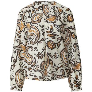 Diese fließende Viskose-Bluse verzaubert mit ihrem verspielten Blumenmuster. Der V-Ausschnitt und die feminine Raffung setzen elegante Akzente, während die elastischen Ärmelabschlüsse für entspannten Tragekomfort sorgen. Ein vielseitiger Begleiter für deine Casual-Looks. Damen Blusenshirt aus Viskose-Mischung V-Ausschnitt Langarm mit elastischem Bündchen Allover Paisley-Print Strukturierte Oberfläche Gerade Passform Farbbezeichnung: White Material: 84% Viskose, 16% Polyamid Die Marke s.Oliver ist Mitglied der Fair Wear Foundation.