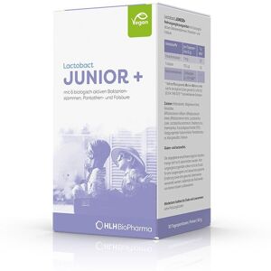 Nahrungsergänzungsmittel sind kein Ersatz für eine ausgewogene und abwechslungsreiche Ernährung als Teil eines aktiven und gesunden Lebensstils.Gesund und fit durch die KindheitLactobact JUNIOR + ist ein speziell für Kinder ab 2 Jahren entwickeltes Probiotikum in Pulverform. Der Darm von Kindern hat andere Bedürfnisse als der von Erwachsenen. Mit 6 biologisch aktiven Bakterienkulturen trägt das Präparat zur Förderung einer ausgewogenen Darmmikrobiota (Darmflora) bei. Diese unterstützt den Körper bei der Abwehr unerwünschter Keime und stabilisiert die Verdauung. Es wird verhindert, dass Allergene und Pathogene über die Darmwand in das Blut gelangen und Krankheiten hervorrufen können. Die biologisch aktiven Mikroorganismen in Lactobact JUNIOR + sind mikroverkapselt und somit vor schädlicher Magensäure geschützt. Sie können sich problemlos im Wirkort Darm entfalten. Ergänzt wird das Produkt durch Pantothensäure und Folsäure (Vitamin B5 & B9), die das Immunsystem und die geistige Leistungs- und Konzentrationsfähigkeit unterstützen. Bei Antibiotikatherapien kann Lactobact JUNIOR + unterstützend eingesetzt werden, um Folgeproblematiken zu verringern.Die probiotischen Mikroorganismen in Lactobact JUNIOR + sind durch einen pflanzlichen Überzug, die so genannte Mikroverkapselung, vor schädlicher Magensäure geschützt, sodass sie im Darm ihre volle Wirkung entfalten können.Das könnte Sie auch interessieren:Nettofüllmenge:7x2g (7-Tage-Kur)Verzehrsempfehlung:1 x täglich 2 g in etwas Flüssigkeit oder breiige Nahrung einrühren, mehrmals umrühren und dann verzehren. Die Einnahme ist unabhängig von der Tageszeit.Aufbewahrung:Aufbewahrung vor dem Öffnen bei Raumtemperatur. Nach Anbruch im Kühlschrank lagern und innerhalb von 25 Tagen aufbrauchen. Außerhalb der Reichweite von kleinen Kindern aufbewahren. Hinweis:Das Produkt sollte stets außerhalb der Reichweite von Kindern gelagert werden. Lactobact JUNIOR + ist speziell an die Bedürfnisse von Kindern im Alter von 2 - 8 Jahren angepasst. Für jüngere Kinder haben wir unser Lactobact BABY + und Lactobact BABY TROPFEN entwickelt.Die angegebene empfohlene tägliche Verzehrsmenge darf nicht überschritten werden.Nahrungsergänzungsmittel sind kein Ersatz für eine abwechslungsreiche und ausgewogene Ernährung und eine gesunde Lebensweise.Für einen idealen Darmaufbau im Erwachsenenalter empfehlen wir unser Lactobact PREMIUM.Zutaten: Maltodextrin, Magnesiumcitrat,Bakterienstämme: Bifidobacterium bifidum Bifidobacterium breve Bifidobacterium lactis Lactobacillus casei Lactobacillus plantarum Streptococcus thermophilus Fructooligosaccharide, Reisstärke, Trennmittel: Magnesiumsalze der Speisefettsäuren; Festigungsmittel: Kaliumchlorid; Calcium-D-Pantothenat, Mangansulfat, FolsäureNährwertangaben: Inhaltsstoffe pro Tagesportion (2 g) % NRV* Pantothensäure 3 mg 50 Folsäure 100 µg 50 Bakterienkulturen 2 Milliarden (2 x 10⁹) KBE** - * Nährstoffbezugswerte (Nutrient Reference Values) für die tägliche Zufuhr gemäß...