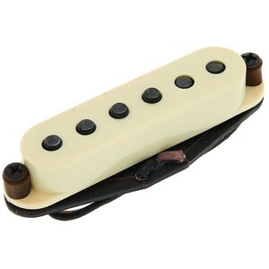 Seymour Duncan Antiquity Texas Hot Middle Pickup; vintage Strat Style Tonabnehmer für E-Gitarre, designt um zusammen mit einem Standard Texas Hot Tonabnehmer für den perfekten Sweet Home Alabama Strat Quack zu sorgen, Mittel Position, aged, umgekehrte Wicklung und Polarität, Single Coil, Staggered Pole Pieces, Alnico II Magnete, Gleichstromwiderstand 6.50 kOhm, stoff-umwickeltes Anschlusskabel, Low Output, Creme Kappe, Made in USA