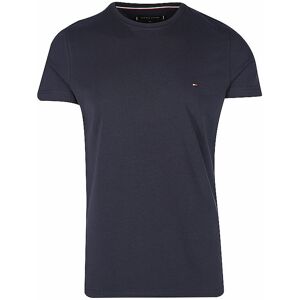 Dieses T-Shirt mit klassischem Rundhalsausschnitt ist ein vielseitiges Basic für Casual-Looks, das sich sowohl als Baselayer als auch solo tragen lässt. Herren T-Shirt aus reiner Baumwolle Rundhalsausschnitt mit Rippblende Kurzarm Leicht überschnittene Schultern Tommy Hilfiger Flag-Stickerei auf der Brust Gerade Passform Unifarben Farbbezeichnung: Blue Material: 100% Baumwolle