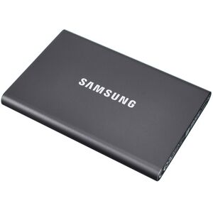 Samsung SSD T7 1TB Titan Grey USB-C; kompakte, externe SSD; bis zu 1TB Speicherkapazität; Lesegeschwindigkeit zu bis zu 1.050 MB/s, Schreibgeschwindigkeit bis zu 1.000 MB/s; Passwortschutz auf Basis von AES 256-Bit-Hardwareverschlüsselung; Aluminium-Gehäuse; USB 3.2; Anschluss: USB-C; inkl. USB-Kabel Typ-C auf C und Typ-C auf A zur Verbindung zu PCs, Macs, Android-Geräten, iPhone 15, Smart TVs und Spielekonsolen; Abmessungen: 85 x 57 x 8 mm (BxHxT); Gewicht: 72g