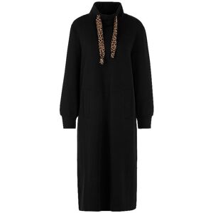 Unifarbenes Sweatkleid aus softem Baumwollgemisch in sportlich-eleganter Midilänge. Der Stehkragen wird durch eine breite Kordel mit Leoprint zum stilvollen Blickfang. Zwei Eingriffstaschen auf Hüfthöhe bieten Komfort im Alltag. Lässig, feminin und perfekt für entspannte Looks mit modischem Twist. Damen Maxikleid Lang geschnitten Lockerer Schnitt Midilänge Eingrifftaschen Sportlich Farbbezeichnung: Black Material: 88% Baumwolle 8% Polyester 4% Elastan