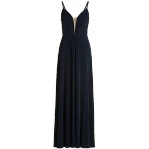 Elegantes Damen Abendkleid aus Jersey mit Glitzereffekt Wasserfallausschnitt Langarm Schließt mit Reißverschluss Raffung im Vorderteil Langer Schlitz Figrubetonte Passform Gesamtlänge: Ca. 154 cm Länge ab Taille: 112 cm Farbbezeichnung: Dark Blue / Dark Blue Material: 95% Polyester, 5% Elasthan