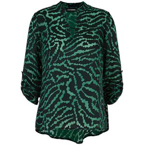 Diese feminine Bluse von Doris Streich mit ihrem edlen Grafik-Print hat partiell halbtransparente Stellen im sog. Ausbrenner-Print. Der fließende Schnitt in A-Linie, die Falte im Rückenteil und die Seitenschlitze zaubern eine schmale Silhouette. Die langen Ärmel lassen sich mit einer Lasche flexibel hochraffen oder hochkrempeln. Alloverprint, nicht platziert - jedes Teil ein Unikat. Allover-Print Farbbezeichnung: Wintergrün Material: 55 % Viskose, 45 % Polyester