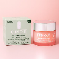 Clinique Moisture Surge™ SPF 25 Sheer Hydrator, 30 ml, Sonnenschutz für das Gesicht für Damen, Sie möchten Ihre Gesichtspflege wirklich ernst nehmen? Verwenden Sie täglich eine Gesichtscreme – sie ist die Grundlage jeder Pflege und sollte bei keiner Hautpflege-Routine fehlen – egal, welchen Hauttyp und welche Bedürfnisse Sie haben. Die Clinique Moisture Surge™ SPF 25 Sheer Hydrator Gesichtscreme unterstützt die natürliche Hautfunktion, spendet der Haut ausreichend Feuchtigkeit, bringt sie wieder in Balance und lässt sie insgesamt gesünder aussehen. Eigenschaften: spendet intensiv Feuchtigkeit zieht schnell ein schützt die Haut vor schädlichen Umwelteinflüssen macht die Haut spürbar seidenweich Anwendung: Auf die gereinigte Haut auftragen und mit kreisförmigen Bewegungen einmassieren. Regelmäßig morgens und abends benutzen.