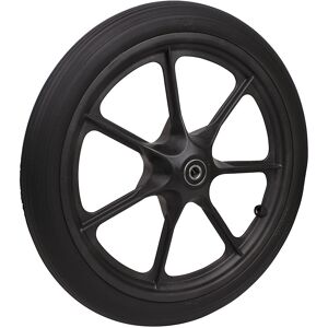 Speichenrad, Rad-Ø x Breite 400 x 45 mm, PU-Bereifung, ab 4 Stk. Anlieferung = montiert. Raddurchmesser = 400 mm. Radgröße = 16x2 Zoll. Tragfähigkeit bei 4 km/h = 60 kg. Radbreite = 45 mm. Radlagerung = Kugellager. Radmaterial = Polyurethan. Felgenmaterial = Kunststoff. Anzahl Speichen = 7 Stück. Reifenprofil = Rillenprofil. Nabenbohrung = 12 mm. Nabenlänge = 58 mm. Shorehärte = 85° Shore A +/-5° Shore A. Temperaturbeständigkeit = +10 °C bis +30 °C. Farbe = schwarz. Laufflächenfarbe = schwarz. Einbaulänge = 58 mm. Eigenschaft = pannensicher, Kugellager bündig. Produkttyp = Speichenräder. Luft- oder pannensichere PU-Bereifung. 7 Speichen.