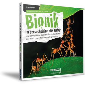 Schwimmen wie ein Fisch, fliegen wie ein Vogel – wenn der Mensch Technik nach dem Vorbild der Natur entwickelt, spricht man von Bionik. Und technische Errungenschaften, die von der Natur inspiriert sind, sind zahllos: Vom einfachen Klettverschluss, über die Luftfahrt, die ohne den Samen- und Vogelflug nicht denkbar ist, bis hin zu modernsten ultrastabilen und leichten Baumaterialien. Die inspirierenden Lösungen der Natur Mit diesem Buch und einigen zusätzlichen Materialien kannst du in 24 Experimenten dem Ideenreichtum der Natur nachspüren und deine eigenen Bionik-Projekte umsetzen. Dabei ziehst du Kapuzinerkresse, um den berühmten Lotuseffekt zu erkunden, untersuchst die effizienteste Fortbewegungsart im Tierreich und die geniale Flugweise von Pflanzensamen, sammelst Wasser wie der faszinierende Nebentrinkerkäfer, und baust einen Kühlschrank nach dem Vorbild des Präriehund-Bau...