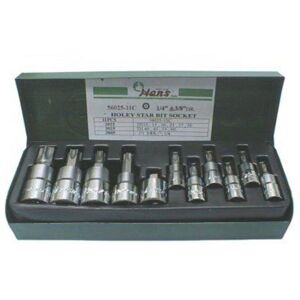 Anzahl der Werkzeuge: 10. Buchse [Zoll]: 1/4, 3/8. Hersteller: HANS. Herstellernummer: 56025-11C. Index: 56025-11C. Profil: TORX TAMPER. TORX TAMPER Größe: T10H, T15H, T20H, T25H, T27H, T30H, T40H, T45H, T55H, T60H. Verpackung / Lagerung: in einer Metallbox. Werkzeugtyp: Buchse/Stift (Bit) TORX TAMPER.