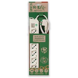 Fanton ECO RELIFE OMEGA Mehrfachsteckdose 6 Steckdosen italienisch-dual-size/deutsch std. 2P+E 16A Kabel 1,5 m. 3G0,75 H05VV-F Stecker italienische Std. 2P+E 10A + leuchtender automatischer berlastschalter. Anzahl Steckdosen/Steckdosen: 6 Steckdosentyp: Dual-Size IT/DE 2P+E 16A Steckertyp: Italienisch 2P+E 10A Kabellänge: 1.500 m Querschnitt und Kabeltyp: 3G0,75 H05VV-F Schutzart: IP20 Material: Regeneriertes Polypropylen Farbe: Weiß Zubehör/Optionen: Überlastschalter Einzelverpackung: ECO RELIFE Box Qualitätszeichen: CE Nennspannung (Volt): 250 V Wechselstrom Stromstärke: 10.000 A Frequenz (Hertz): 50 - 60 Hz Leistung (Watt/Kilowatt): MAX 2300W