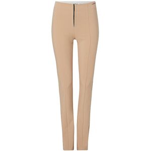Damen Hose aus Stretch Hohe Leibhöhe Markanter Reißverschluss als Verschluss Logo Print unter dem Saum Fixierte Bugfalten Seitlich geschlitzt Schmal geschnitten Farbbezeichnung: Beige Material: 82% Polyester, 12% Modal, 6% Elasthan