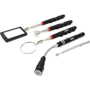 Das fünfteilige magnetische Werkzeugset von HBM wird mit einer LED-Lampe, Spiegeln und Magneten geliefert. Somit ist dieses Set ideal zum Aufnehmen von Schrauben und anderen kleinen Metallteilen. Mit diesem Set müssen Sie nie wieder einen Werkzeugschrank zur Seite schieben, um an eine verlorene Schraube zu gelangen.