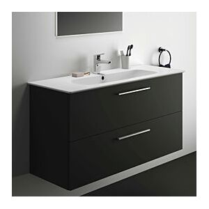 Ideal Standard i.life A Möbelwaschtisch-Paket K8741NHaus Feinfeuerton mit Überlauf und HahnlochWaschtisch-Unterschrank mit Befestigungssatz mit 2 Soft-Closing-Auszügen sowie Griff in Chrom gebürstetKorpus und Front aus melaminbeschichtetem HolzwerkstoffSiphonausschnitt aus Metall in grau-anthrazitAuszüge in grau-anthrazit