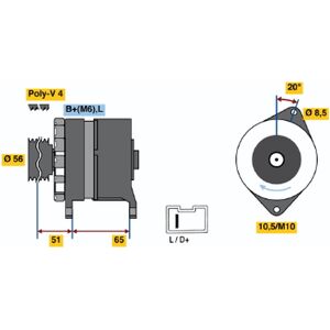 BOSCH Generator Spannung [V]:14 V Anzahl der Rillen:4 Befestigungsart:Doppelschwenkarm empfohlene Reparaturerweiterung:Keilriemen/Keilrippenriemen Drehrichtung:Drehrichtung im Uhrzeigersinn Klemme:B+(M6) Abstand von Riemenscheibe zum Generator [mm]:45 mm Klemme:D+ Länge [mm]:154 mm Generator-Ladestrom [A]:55 A Riemenscheiben-Ø [mm]:56 mm Generatorausführung:exkl. Vakuumpumpe Riemenscheiben:mit Mehrfachriemenscheibe Steckerausführung-ID:PL26 Austauschteil , u.a. für Peugeot 205 I (741A/C), 1580 cm³, 116 PS (85 kW), 2/1983 bis 7/1987Citroën Visa, 1580 cm³, 103 PS (76 kW), 1/1985 bis 6/1986, KBA-Nr: 3001428Citroën Visa, 1580 cm³, 113 PS (83 kW), 6/1986 bis 3/1991, KBA-Nr: 3001441Citroën Visa, 1769 cm³, 60 PS (44 kW), 4/1984 bis 3/1991, KBA-Nr: 3001420Citroën BX (XB-), 1580 cm³, 72 PS (53 kW), 1/1987 bis 2/1993, KBA-Nr: 3001468Citroën BX (XB-), 1580 cm³, 87 PS (64 kW), 7/1985 bis 2/1993, KBA-Nr: 3001429Citroën BX (XB-), 1580 cm³, 90 PS (66 kW), 10/1982 bis 6/1988, KBA-Nr: 3001408Citroën BX (XB-), 1580 cm³, 92 PS (68 kW), 10/1982 bis 12/1992, KBA-Nr: 3001497Citroën BX (XB-), 1580 cm³, 103 PS (76 kW), 3/1986 bis 2/1993, KBA-Nr: 3001442Citroën BX (XB-), 1905 cm³, 95 PS (70 kW), 9/1986 bis 11/1989, KBA-Nr: 3001463Citroën BX (XB-), 1905 cm³, 102 PS (75 kW), 7/1986 bis 5/1989, KBA-Nr: 3001421Citroën BX (XB-), 1905 cm³, 109 PS (80 kW), 6/1988 bis 2/1993, KBA-Nr: 3001224Citroën BX (XB-), 1905 cm³, 120 PS (88 kW), 6/1988 bis 2/1993, KBA-Nr: 3001226Citroën BX (XB-), 1905 cm³, 122 PS (90 kW), 7/1986 bis 2/1993, KBA-Nr: 3001443Citroën BX (XB-), 1905 cm³, 147 PS (108 kW), 3/1988 bis 2/1993, KBA-Nr: 3001229Citroën BX (XB-), 1905 cm³, 64 PS (47 kW), 9/1983 bis 9/1993, KBA-Nr: 3001231Citroën BX (XB-), 1905 cm³, 69 PS (51 kW), 3/1987 bis 2/1993, KBA-Nr: 3001230Citroën BX (XB-), 1580 cm³, 88 PS (65 kW), 5/1989 bis 2/1993, KBA-Nr: 3001487Citroën BX (XB-), 1905 cm³, 109 PS (80 kW), 4/1989 bis 2/1993, KBA-Nr: 3001481Citroën BX (XB-), 1905 cm³, 120 PS (88 kW), 6/1988 bis 2/1993, KBA-Nr: 3001228Citroën BX (XB-), 1580 cm³, 72 PS (53 kW), 9/1988 bis 12/1994, KBA-Nr: 3001469Citroën BX (XB-), 1580 cm³, 87 PS (64 kW), 7/1985 bis 12/1994, KBA-Nr: 3001436Citroën BX (XB-), 1580 cm³, 103 PS (76 kW), 3/1986 bis 12/1994, KBA-Nr: 3001444Citroën BX (XB-), 1905 cm³, 102 PS (75 kW), 7/1986 bis 12/1994, KBA-Nr: 3001435Citroën BX (XB-), 1905 cm³, 120 PS (88 kW), 6/1988 bis 12/1994, KBA-Nr: 3001227Citroën BX (XB-), 1905 cm³, 64 PS (47 kW), 9/1983 bis 11/1994, KBA-Nr: 3001232Citroën BX (XB-), 1905 cm³, 69 PS (51 kW), 3/1987 bis 12/1994, KBA-Nr: 3001459Citroën BX (XB-), 1580 cm³, 88 PS (65 kW), 5/1989 bis 12/1994, KBA-Nr: 3001488Citroën BX (XB-), 1905 cm³, 109 PS (80 kW), 6/1988 bis 12/1994, KBA-Nr: 3001225Citroën C25 (280, 290), 1905 cm³, 69 PS (51 kW), 7/1987 bis 2/1994, KBA-Nr: 3001200Citroën C15 (VD), 1769 cm³, 60 PS (44 kW), 7/1986 bis 12/2000, KBA-Nr: 3001439Peugeot 205 I (741A/C), 1580 cm³, 72 PS (53 kW), 3/1987 bis 10/1987, KBA-Nr: 3003241Peugeot 205 I (20D, 741B), 1580 cm³, 103 PS...