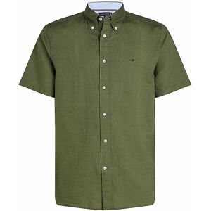 Herren Hemd aus angenehmer Baumwoll-Leinen-Mischung Button-Down-Kragen Schließt mit Knopfleiste Kurzarm Tommy HIlfiger Flag Stickerei Gerade Passform Unifarben Farbbezeichnung: Green Material: 52% Organische Baumwolle, 48% Leinen