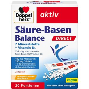 Anwendungsgebiet von Doppelherz Säure-basen Balance Direct PelletsDoppelherz Säure-basen Balance Direct Pellets fördern bei Ihnen einen ausgeglichen Säure-Basen-Haushalt und helfen Ihnen, dass Ihr Stoffwechsel reibungslos funktioniert. Wirkungsweise von Doppelherz Säure-basen Balance Direct PelletsDie Voraussetzung für Ihre optimale Gesundheit und ein ausgeglichenes Wohlbefinden, ist ein balancierter Säure-Basen-Haushalt. Nur so kann Ihr Stoffwechsel reibungslos funktionieren. Ihr Körper versucht dabei mit einem eigenen Puffersystem, Ihren pH-Wert im Körper, in einem Gleichgewicht zu halten. Dieses Puffersystem funktioniert in Ihrem Blut, in der Lunge, wo der Gasaustausch stattfindet, über die Urinausscheidung und in der Leber. So können Säuren neutralisiert werden und Ihr Körper gerät nicht in ein Ungleichgewicht. Jedoch bei Hektik, Stress, Alkohol, einseitige Diäten, Rauchen und der übermäßige Verzehr säurebildender Nahrungsmittel (z. B. Fleisch, Wurst, Teigwaren, Käse) wird dieses Ungleichgewicht ausgelöst. In solchen Situationen ist eine basenbildende Nahrungsaufnahme wichtig, um die Säurebelastung in Ihrem Körper entgegen zu wirken. Hier helfen und wirken Doppelherz Säure-basen Balance Direct Pellets. Doppelherz Säure-basen Balance Direct Pellets besitzen 7 ausgewählte Mineralstoffe, sowie Spurenelemente mit dem Zusatz an Vitamin B6. Mineralstoffe und Spurenelemente, wie zum Beispiel: Magnesium, Calcium, Zink, Chrom und Molybdän sind an vielen Funktionen in Ihrem Körper beteiligt und müssen ausreichend aufgenommen werden. Magnesium fördert eine normale Muskel- und Nervenfunktion und unterstützt den Energiestoffwechsel, während Calcium am Knochenhaushalt wirkt und den Muskel unterstützt. Zink als ein Spurenelement, trägt zur normalen kognitiven Gehirnfunktion bei und fördert Ihren Säure-Basen-Haushalt. Chrom in Doppelherz Säure-basen Balance Direct Pellets spielt im normalen Makro