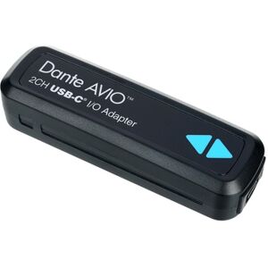 Dante AVIO USB-C IO Adapter 2x2; für die Anbindung eines Computers an ein Dante Netzwerk; ideal für das Aufnehmen oder Abspielen eines Stereosignals; robustes Gehäuse; voll funktionsfähige Dante-Schnittstelle; überträgt zwei Eingänge und zwei Ausgänge mit 48kHz / 24 Bit ; class compliant; Anschlüsse: RJ45 und USB Type-C; Hinweis: kann mit einem optionalem USB Kabel Typ A auf Typ C auch an USB A Ports angeschlossen werden (Artikel 491488 - nicht im Lieferumfang enthalten)