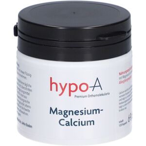 Anwendungsgebiet von Hypo A Magnesium Calcium KapselnHypo A Magnesium Calcium Kapseln enthalten mit Calcium und Magnesium zwei der wichtigsten Nährstoffe unseres Körpers. Beide sind Bestandteil zahlreicher Stoffwechselprozesse und Strukturen, wie z.B. der Knochen.Wirkstoffe / Inhaltsstoffe / ZutatenZutaten von Hypo A Magnesium Calcium Kapseln: Magnesiumcarbonat 50 %, Calciumcarbonat 33 %, HydroxypropylmethylcelluloseGegenanzeigenBei bekannter Überempfindlichkeit gegen einzelne Inhaltsstoffe sollte Hypo A Magnesium Calcium Kapseln nicht verzehrt werden.DosierungVerzehrempfehlung von Hypo A Magnesium Calcium Kapseln: 2-mal täglich 2 Kapseln mit etwas Flüssigkeit einnehmen. HinweiseNahrungsergänzungsmittel sind kein Ersatz für eine ausgewogene und abwechslungsreiche Ernährung und eine gesunde Lebensweise. Die angegebene empfohlene tägliche Verzehrmenge darf nicht überschritten werden. Außerhalb der Reichweite von kleinen Kindern aufbewahren. Hypo A Magnesium Calcium Kapseln können in Ihrer Versandapotheke www.juvalis.de erworben werden.