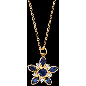 Sechs tiefblaue Saphire bilden einen blumigen Stern, veredelt durch fünf funkelnde Diamanten. Eine himmlische Halskette, die zwischen nächtlichem Geheimnis und königlichem Glanz schwebt.Mit Kette 42 cm + Verlängerung von 3 cm; 375/-. Gelbgold (375/-): 2.3 g.Synthetischer Saphir : 6 - Labordiamant : 5 - Total: 0.8 Karat