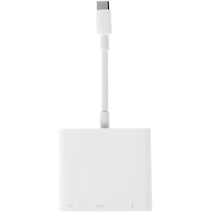 Apple USB-C Digital AV Multiport Adapter; zum Anschluss eines Mac oder iPad Pro mit USB-C an ein HDMI Display und parallel an ein gängiges USB Gerät und ein USB-C Ladekabel; ermöglicht die Spiegelung des Mac Display auf einen HDMI fähigen Fernseher oder Displays; unterstützt bis zu 3840 x 2160 bei 60 Hz; Anschlüsse: HDMI, USB und USB (Anschlusskabel nicht im Lieferumfang enthalten)