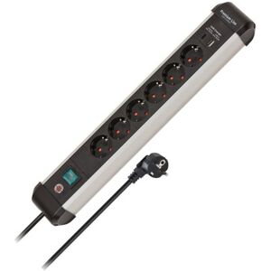 Brennenstuhl Premium-Alu-Line Steckdosenleiste 6-fach mit USB C PD 30W und USB A 18W; Gehäuse aus Aluminium; 3 m Kabellänge H05VV-F 3G1,5; 2 USB Ladebuchsen - 1x Charger Typ C PD 30W für schnelles Laden und 1x USB A 18W, Aufhänge-Vorrichtung zur Wandmontage und beleuchteter Sicherheitsschalter zum Ein- und Ausschalten (zweipolig); Schutzkontakt-Steckdosen in 45°-Anordnung; Abmessungen (LxBxH): 8 x 10 x 49 cm; Gewicht: 1,01 kg